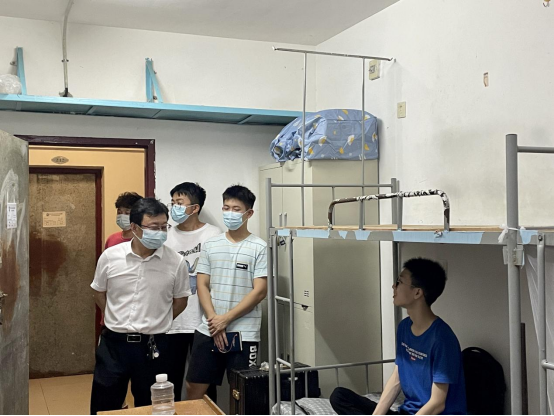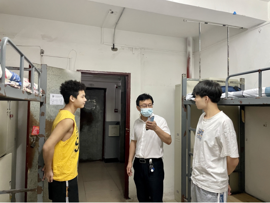 9月10日晚20:00,在车辆工程系主任耿奎同志的带领下,辅导员程燕老师,学生会成员分别前往了五栋新生宿舍,查看大家的宿舍居住情况,叮嘱相关注意事项,并与部分学生进行了交流。 耿奎主任等人依次进入每个宿舍,对在宿舍整理东西的新生进行了耐心的询问和亲切的关怀。对于学生的家乡、学院的适应情况、校园的环境,耿奎主任都详细询问,同时对于新生所反应的宿舍问题,也第一时间进行了登记。并表示会尽快解决,给新生提供良好的住宿环境,同时也对宿舍安全进行了强调和要求。
