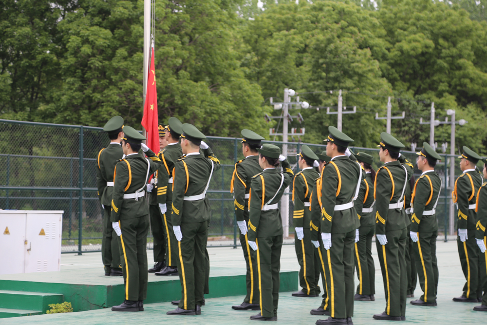 升旗仪式上,21名国旗班成员身着崭新的制服,迈着整齐而坚定的步伐护送国旗走向旗台,以饱满的热情、蓬勃的精神举行了升旗仪式。伴随着雄壮的国歌,鲜艳的五星红旗迎风展开,缓缓升起,全场师生行注目礼。