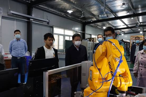 10月9日,省经信厅厅党组成员、副厅长孟春林一行来beat365调研全国工业和信息化技术技能大赛工业机器人赛项集训工作,学院领导班子接待了孟春林一行。