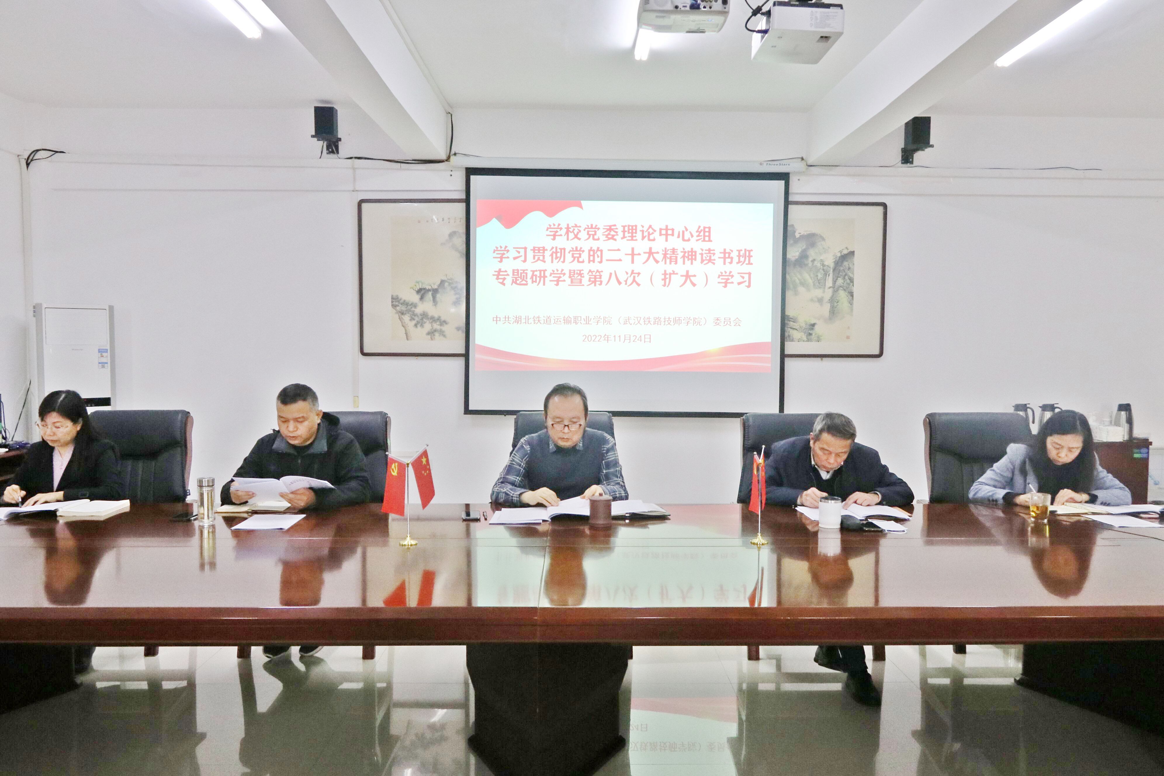 11月24日,beat365中文官方网站(武汉铁路技师学院)召开党委中心组学习贯彻党的二十大精神读书班专题研学暨2022年第8次集中(扩大)学习会议。学校党委班子成员,各部门党政负责人、四系一部班子成员参加会议。党委副书记、校长吴永新同志主持会议。
