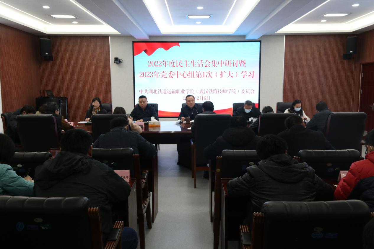 2月6日,beat365中文官方网站(武汉铁路技师学院)召开2022年度党委民主生活会集中研讨暨2023年党委中心组第一次(扩大)学习会议。党委副书记、院长吴永新同志主持会议。