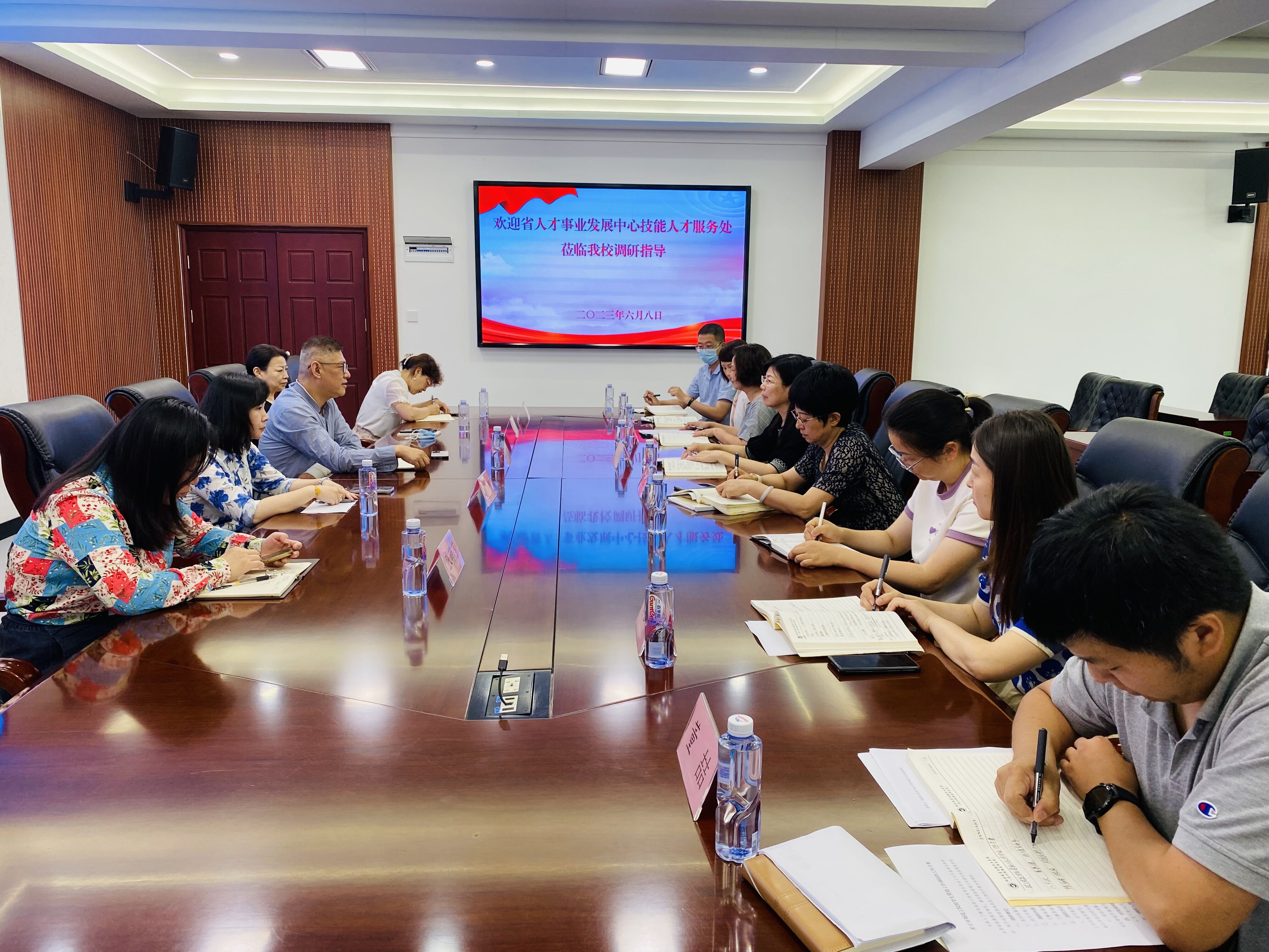 6月8日,省人才事业发展中心技能人才服务处室负责人赵弋炯等一行5人来beat365对学生资助工作开展情况和学生资助政策落实情况进行调研。学校党委委员、副院长刘海梅,财务处和四系负责人,学生工作处资助工作人员参加座谈交流。