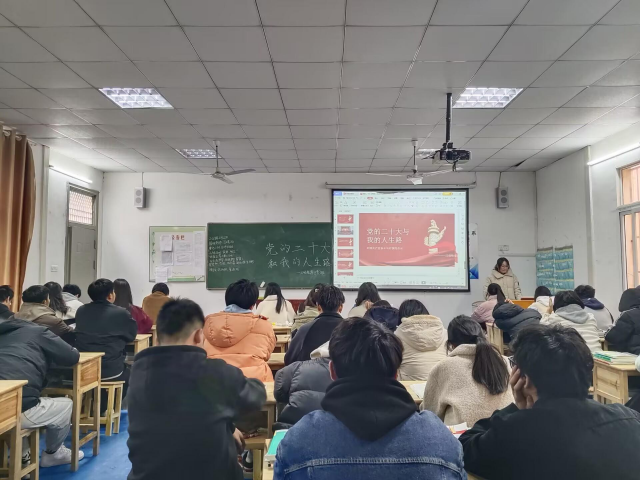 主题教育活动中,各系以主题班会为阵地,围绕“党的二十大和我的人生路”的主题,组织全体学生深入学习党的二十大报告精神并谈体会,结合实际和人生理想开展自我剖析,对照国家社会需要、职业发展、技能成才的人生目标找短板谈不足想办法。