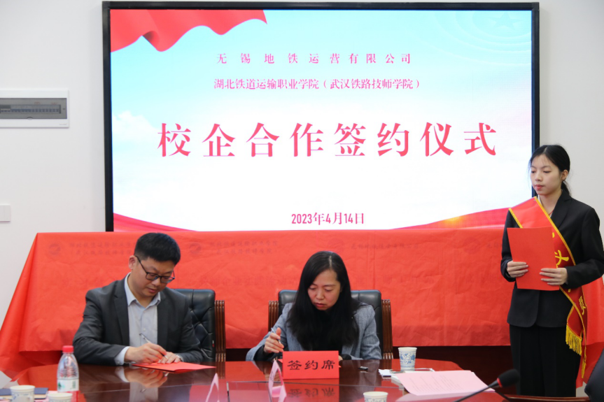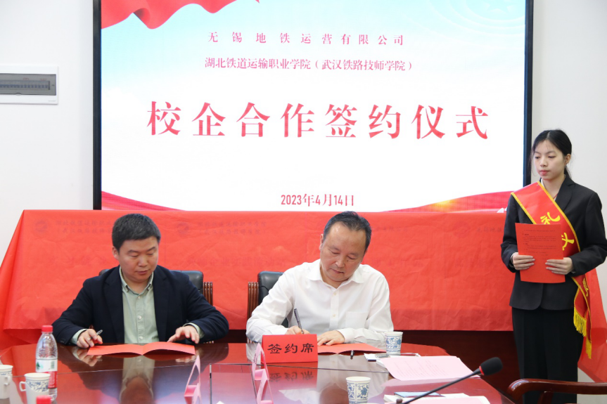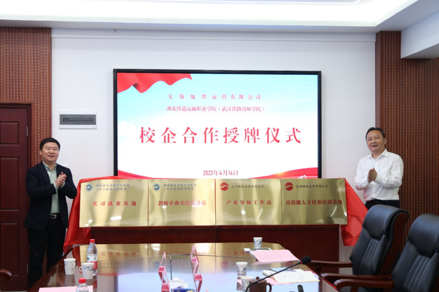 4月14日上午,beat365与无锡地铁运营有限公司举行校企合作签约暨授牌仪式。无锡地铁运营有限公司党委书记、董事长陈定庆、党政办主任张新源、人力资源部部长周超、客运服务部部长唐川等领导,学院党委书记、院长吴永新、副院长饶畅,教务处、招生与就业处、交流与合作处、培训与继续教育处、机车车辆系、车辆工程系、运输管理系、机电工程系等部门负责人参加上述活动。