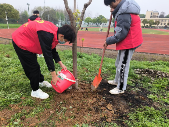 3月22日下午,我系的志愿者小队在学生会和团总支学生干部的带领下开展了植树活动。草长莺飞,春风里,第四十五个植树节如约而至。每一棵树,都代表着希望。在这个春意盎然的季节,种下希望,生生不息,每一棵树,都代表新的期待。清和三月,满枝迎春。我们要坚决贯彻落实党的二十大部署和要求,推动绿色发展,促进人与自然和谐共生。