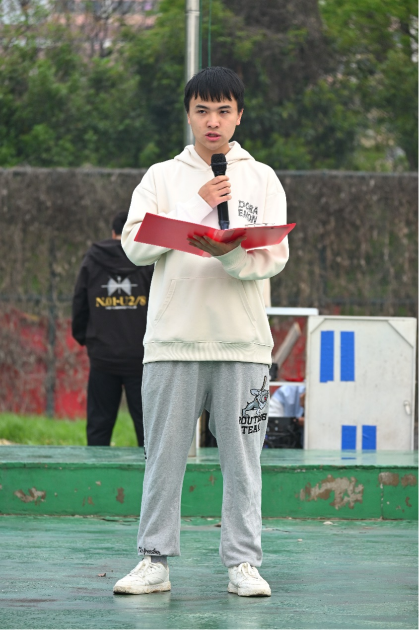 随后,由来自2022级城轨车辆技术4班的优秀学生代表叶林锋同学以“青山埋忠骨,万世传英魂”为主题进行国旗下演讲。
