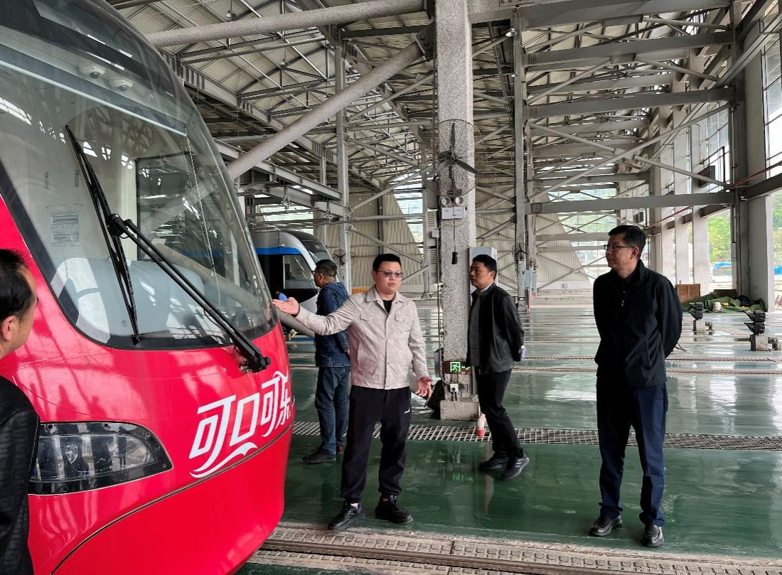 章柯一行现场参观了百花车辆基地、轨道交通调度指挥中心等核心区域,通过实地走访,对黄石城市轨道交通运营有限责任公司企业文化、运营模式有了更加直观深入地了解。
