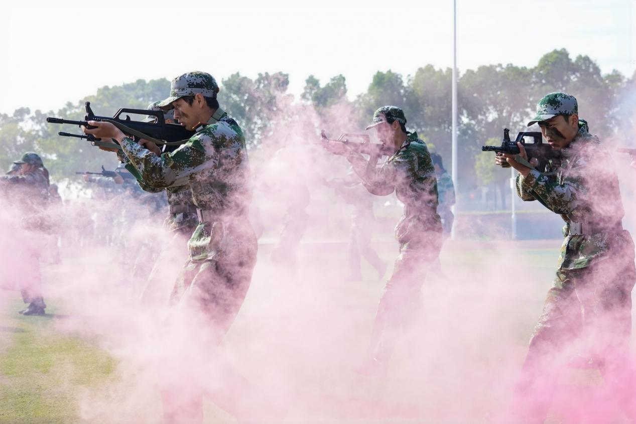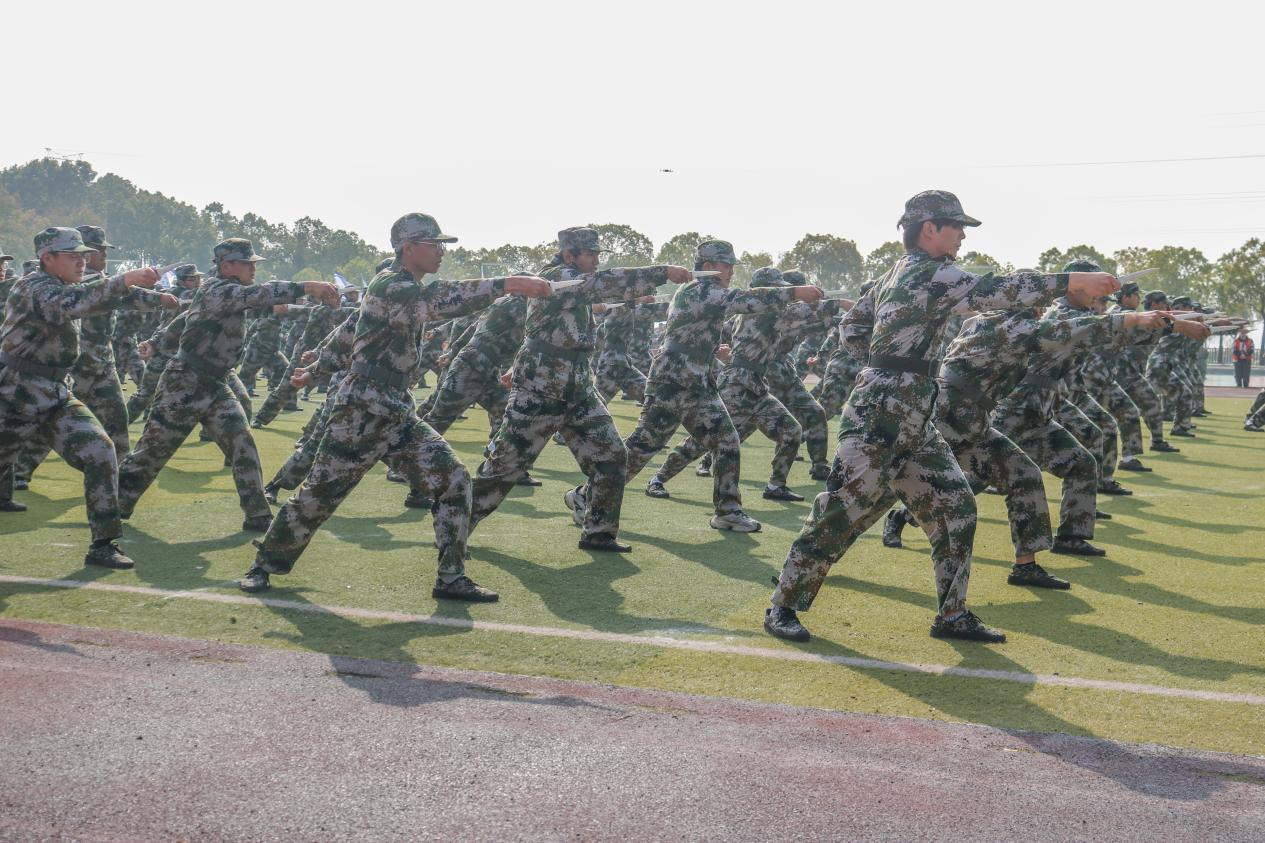 在军训成果汇报中,参训学生展示了创意举牌、匕首操、军体拳、战术动作等,展现出湖铁职院学子爱党爱校、积极向上、奋发拼搏的精神风貌。