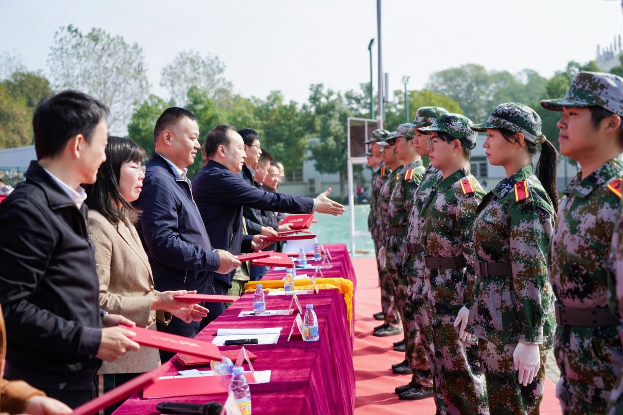杨军宣读军训表彰决定,出席仪式的各位领导和嘉宾为获奖集体和个人代表颁奖。