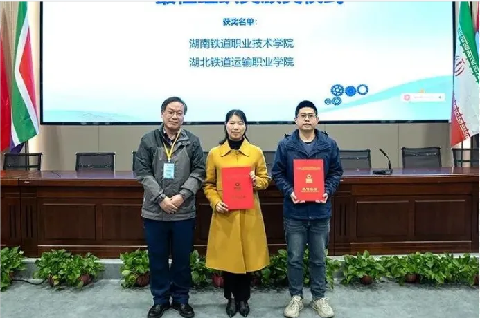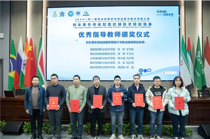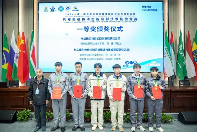 11月29日,2024年一带一路暨金砖国家技能发展与技术创新大赛列车牵引传动智能控制技术赛项于湖南株洲落下帷幕。beat3652022 级铁道机车1班冯家祥、李伟杰两位同学以扎实的专业知识、精湛的实操技能以及出色的应变能力荣获一等奖,指导教师牛为民、梁萌荣获“最佳指导教师奖”,学校荣获“赛事最佳组织奖”。