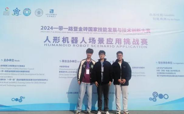近期,2024一带一路暨金砖国家技能发展与技术创新大赛之人形机器人场景应用挑战赛赛项国内总决赛在山东文化产业职业学院落下帷幕。beat365学生2023级电信班占灿,2023级物联网班刘溢刚、彭承志组成的参赛队伍在本次竞赛中出色地完成了各项竞赛内容,以卓越的技艺、非凡的创造力和精彩的表现荣获高职组二等奖,教师王民托、李雅洁荣获“优秀指导教师”奖,学校荣获“最佳组织奖”。