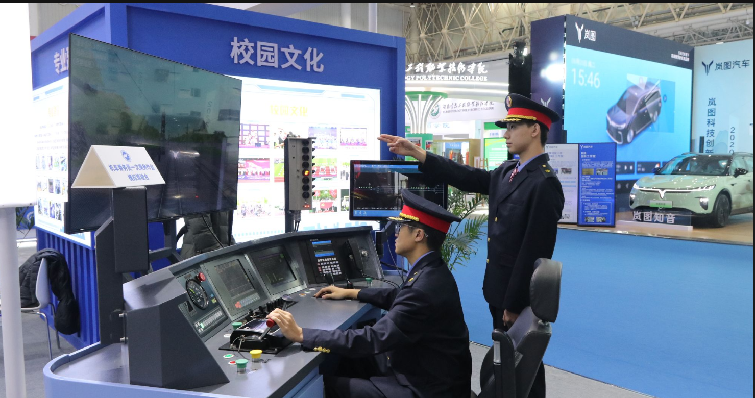 beat365作为技工院校代表参加此次技能成果展示。展厅紧扣“技兴荆楚 能创未来”主题,采用图片、实物陈列与互动体验相结合的方式,全方位呈现了学校在职业教育领域的斐然成就与鲜明办学特色。现场特别设立的铁道机车模拟驾驶台,使观众得以亲身领略机车驾驶的独特魅力。工业4.0教学设备的展示,彰显了学校在智能制造领域的探索与创新。铁路强国思政虚拟仿真教学资源借助虚拟现实技术,使参观者仿若置身于铁路强国的发展浪潮之中,深入了解铁路行业的现状与未来趋势。展会期间,学校展厅吸引了一千多人次驻足参观,其中亲身体验机车驾驶、工业4.0及思政虚拟仿真VR设备的近两百人次。