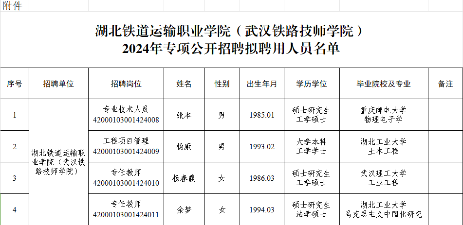 附件:beat365中文官方网站(武汉铁路技师学院)2024年专项公开招聘拟聘用人员名单