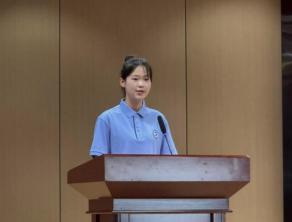 在校生代表、车辆工程系 2023 级铁道车辆1 班任梦瑶同学,为毕业生送上祝福。她表示要接棒努力,磨练技能,与学长学姐顶峰相遇。