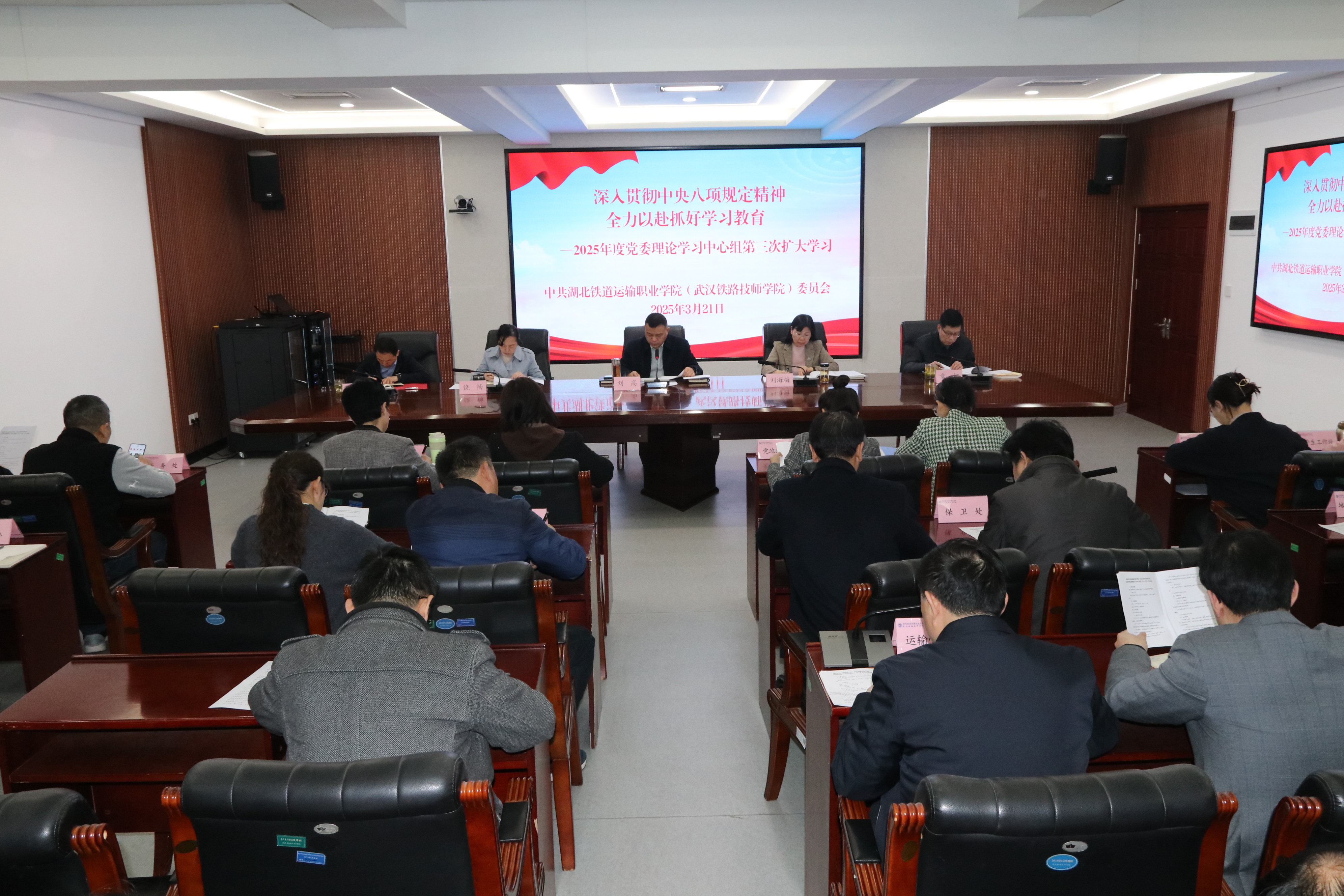 3月21日上午,学校召开深入贯彻中央八项规定精神学习教育启动会暨2025年党委理论学习中心组第3次(扩大)学习会议。党委副书记、院长刘高主持会议,在校领导班子成员、各部门党政负责人、四系一部班子成员参加会议。