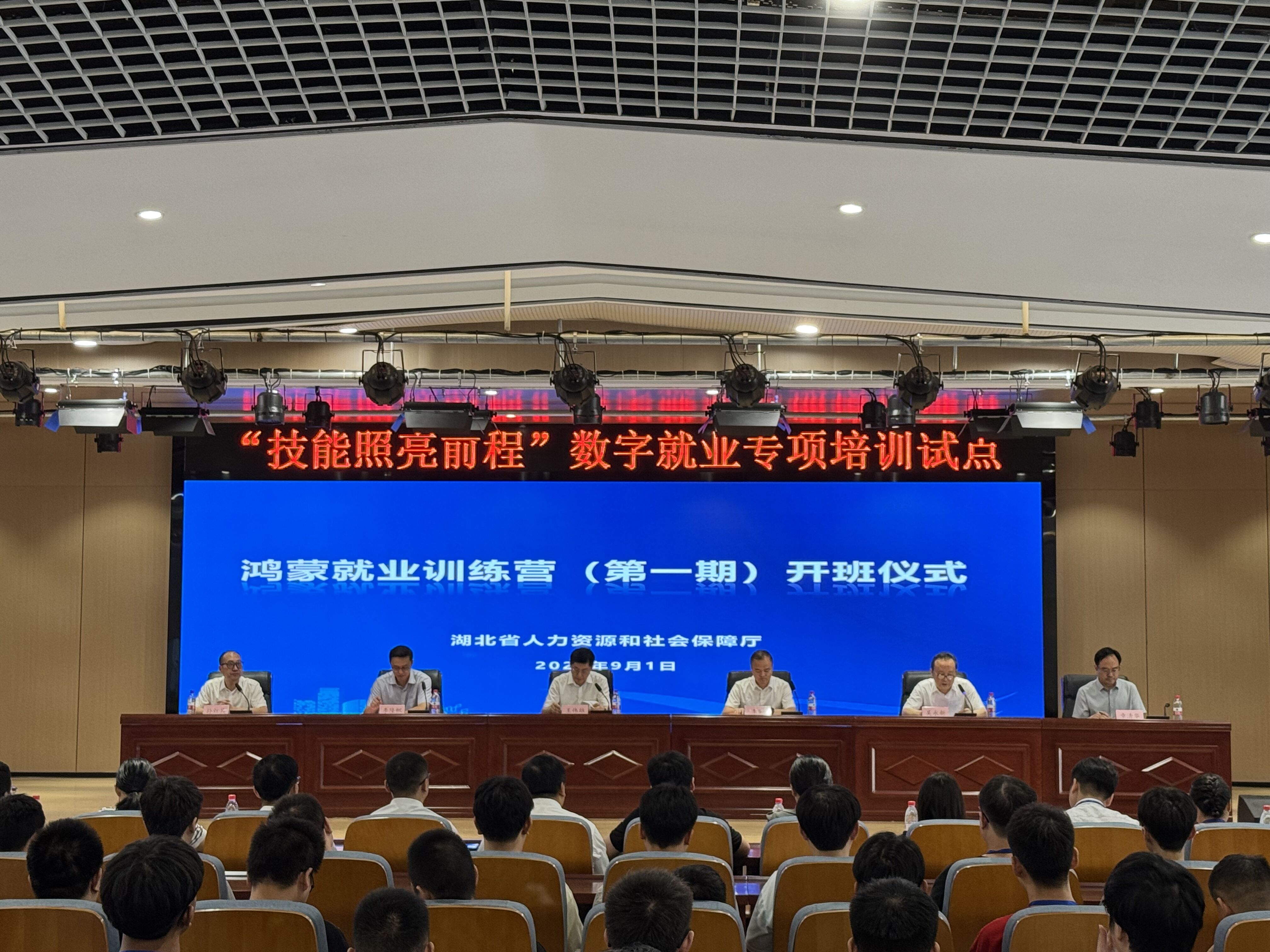 9月1日上午,2025年湖北省人社厅鸿蒙就业训练营在beat365中文官方网站正式开营。省人社厅党组成员、副厅长王伟雄出席活动并讲话。