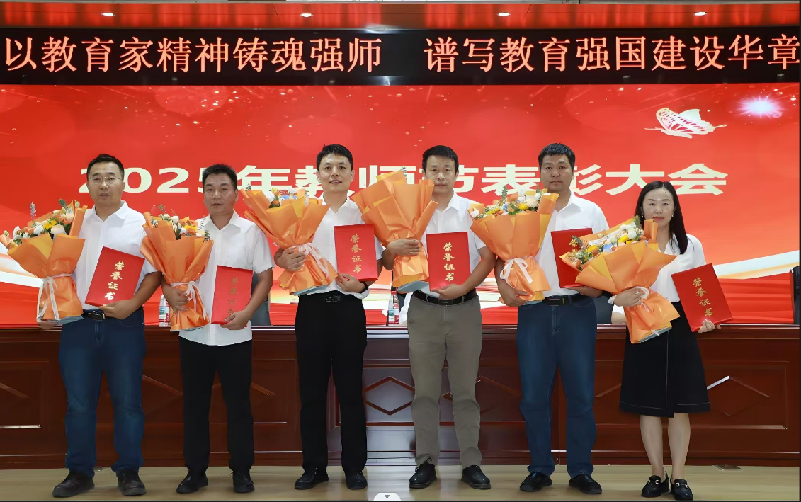学校领导班子和全体教职工参加表彰大会并聆听了思政课。