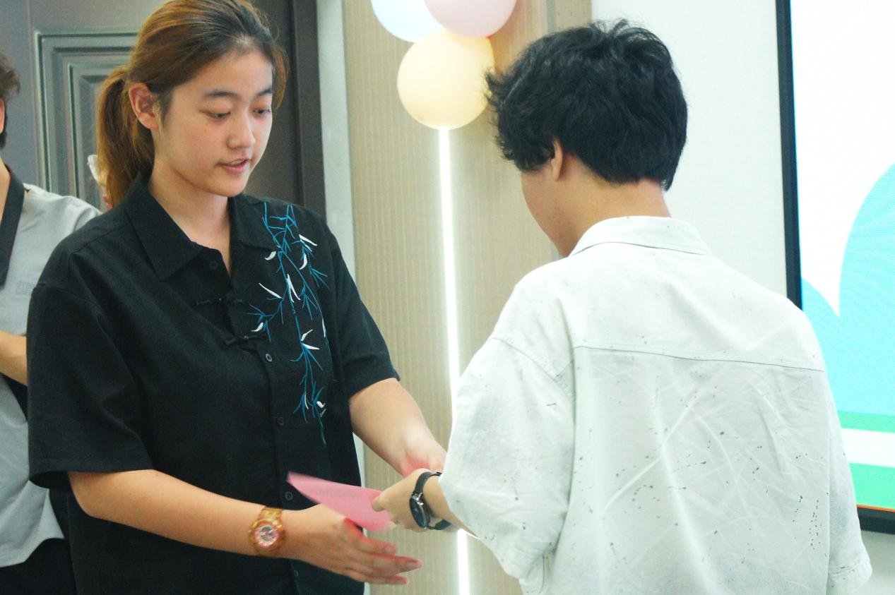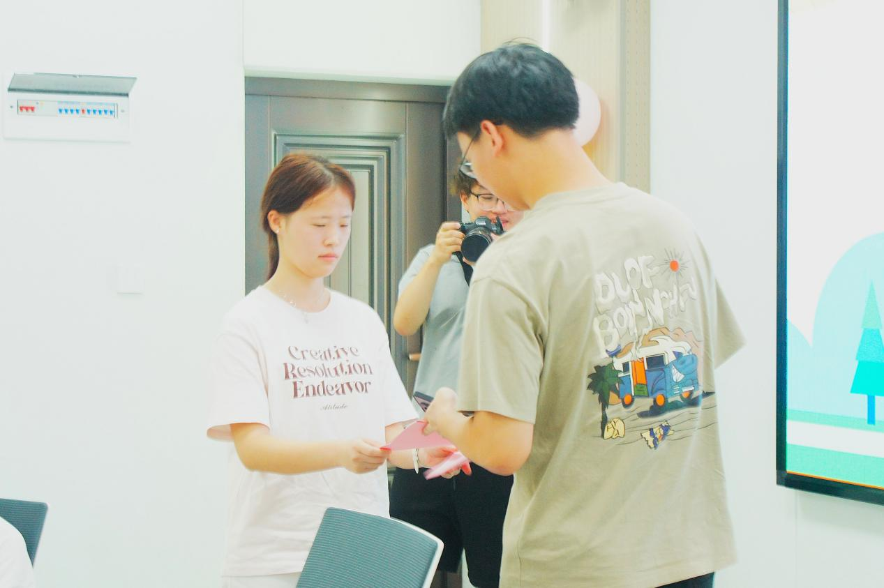 活动精心设计了四大环节,让陌生的彼此在互动中快速靠近:自我介绍环节里,不同院系的同名新生围绕“名字”展开对话,从“没想到校园里还有另一个‘我’的惊喜,到分享家乡与兴趣的热络,名字成了最自然的纽带;“逛三园”接龙环节中,此起彼伏的“苹果!”“香蕉!”声里,有顺利过关的如释重负,也有失利后才艺表演的欢笑,陌生感在趣味互动中悄然消散;同名默契大考察时,面对“最喜欢的水果”“最向往的旅行地”等问题,不少学子不约而同说出相同答案,现场惊叹声不断,让这份“同名缘分”更添奇妙;最后的互送寄语环节,大家低头在明信片上认真书写,笔尖流淌的不仅是文字,更是对“另一个自己”的真诚祝福,收下卡片的瞬间,秋日午后的温暖便定格成难忘的记忆。