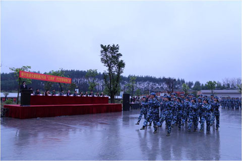 上午9点军训汇演正式开始。虽然天降小雨,地面微湿,学员们依然克服困难踏着整齐的步伐,在统一指挥之下顺利完成了阅兵式、分列式和会操表演。随后,军训基地对本次军训活动中表现突出的优秀学员颁奖给予鼓励。学校老师代表亦做了小结发言。最后集团培训中心陈主任发表总结,宣布本次军训汇演活动圆满结束。