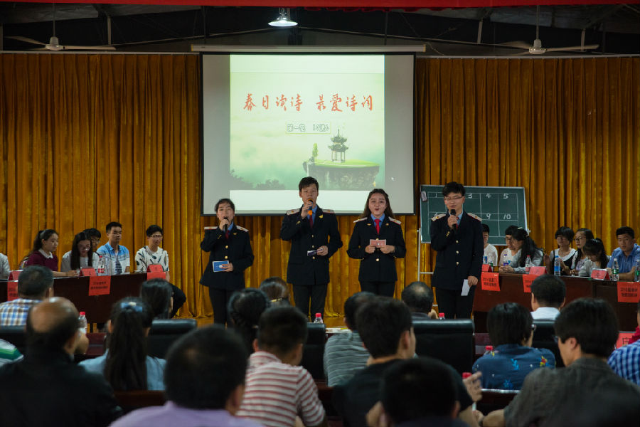 5月10日下午,由教务科、校团委联合主办的“春日读诗,最爱诗词” 大赛决赛在校大礼堂隆重举行,经过两个多月的预赛选拔,共有十个班级脱颖而出进入今天的决赛。学校党委书记鲁文艳,副校长刘海梅、李四海,校纪委书记刘高以及徐州地铁公司的三位领导作为特邀嘉宾出席大赛。