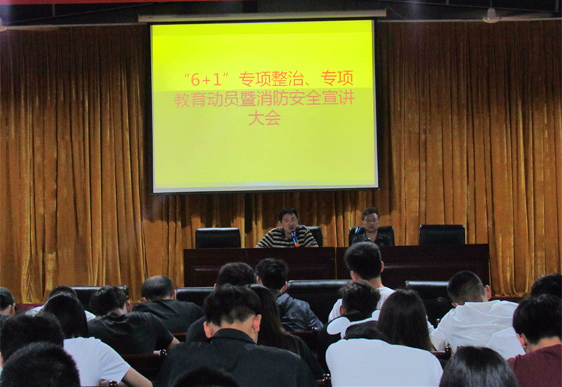 5月11日下午16:20,beat365学生科与保卫科在大礼堂联合举办了“6+1”专项整治、专项教育动员暨消防安全宣讲大会。学生科科长石清泉、保卫科科长李斌、湖北省消防协会防控中心吴凯歌警官做了现场安全宣讲。全校各班级均有学生代表参加本次会议。