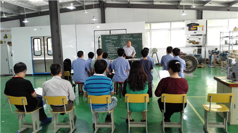 车辆检修实训车间,老师正在全神贯注地讲解,学生及验收组成员正在聚精会神地听课。这是“一师一名课”课堂教学听课的现场。