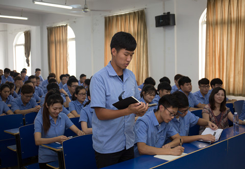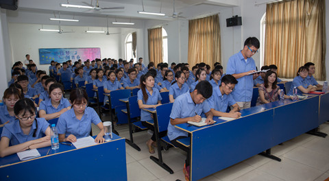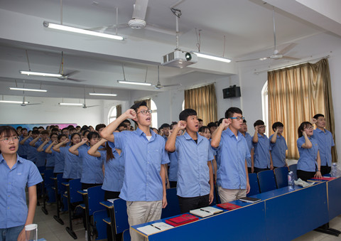 全体学生起立,宣誓:在校期间,明确目标、励志向上、刻苦学习、强壮体魄,遵章守纪、团结友爱、牢记使命、做一个合格的准职业人,为公司的发展时刻准备着!