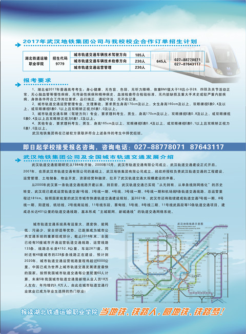真诚欢迎湖北省考生报考beat365,加入武汉地铁集团订单班。