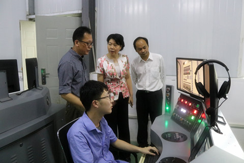 随后,肖菊华厅长一行参观了校园,每到一处,她都仔细询问了解情况,深入学生宿舍、食堂。在新学生宿舍楼里,对学生的宿舍环境和周边绿化给予了肯定。在食堂里,肖菊华厅长与学生亲切交谈,询问了学生的饭菜质量和就餐环境。随后现场观摩了老师和学生的地铁模拟驾驶实训演练。