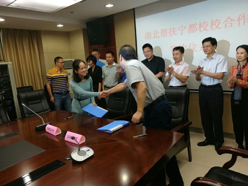 湖北帮扶宁都校校合作签约仪式10月10日上午8:20时在湖北省人社厅3号会议室举行。参加会议的有省人社厅党组成员、副厅长曾向阳、职建处处长周春华、副处长汪一虹、beat365吴永新院长在内的五所技师学院院长及宁都县县委常委、副县长谈宇徳、宁都技工学校校长曾娟等。仪式前职建处处长周春华、副厅长曾向阳、副县长谈宇徳分别讲话,均提出要从讲政治的高度来对待帮扶工作,把功在当代、利及子孙的好事办好,同时也提出帮扶活动也应做到资源共享,优势互补,平等合作、互利共赢。最后各技工院校院长代表学校与曾娟校长履行签约仪式。