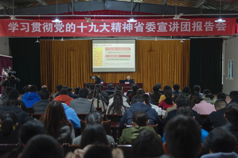报告会上,徐新桥同志以“新思想 新规划 新战略 新姿态”为主题,用理论联系实际的方法,穿插大量鲜活生动的例子,分别从习近平新时代中国特色社会主义思想、中国特色社会主义进入新时代、经济社会发展重大战略部署、全面从严治党以新姿态撸起袖子加油干四个方面对十九大报告作了深刻清晰的解读。