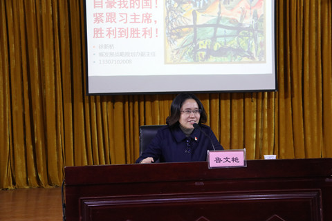 学院党委书记鲁文艳在主持报告会时指出,徐新桥主任所作报告全面系统,对我们更好的理解和把握党的十九大精神将起到重要推动作用。学习好宣传好贯彻好党的十九大精神,是我们当前和今后一个时期的首要政治任务。就学院深入学习贯彻十九大精神,鲁文艳提出三点要求:一是全校教职工要按照中央的要求,原原本本,原汁原味的学习党的十九大报告,领会精神实质,并把十九大精神宣讲到学生中去。二是要广泛宣传,营造氛围,在凝聚发展合力上下功夫,全方位搭建宣传平台,真正使十九大精神入心入脑。三是要融会贯通,学以致用,在推动具体工作上下功夫。学院正处在新校园建设推进期、两校合并收尾期、三定方案推展期等矛盾交织时期,全体教职工要把学习贯彻党的十九大精神与做好各自工作结合起来,按照学院学习贯彻十九大精神实施方案,深入开展好理论学习和研讨,进一步明确目标,转变理念,努力实现学院良好发展。