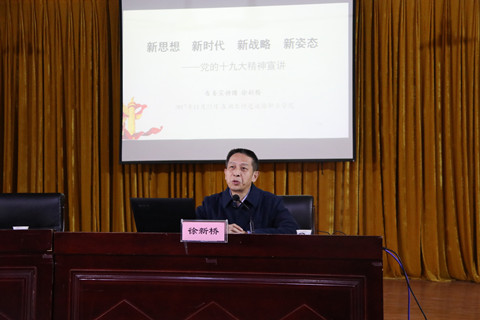 徐新桥同志在宣讲时指出,党的十九大明确回答了我们党在新时代举什么旗、走什么路、以什么样的精神状态、担负什么样的历史使命、实现什么样的奋斗目标的重大问题,这也是当前和今后一个时期党和国家工作的总要求。在两个小时的报告中,徐新桥深刻阐述了党的十九大的主题和主要成果,对习近平新时代中国特色社会主义思想丰富内涵,过去五年的历史性成就和历史性变革,中国特色社会主义进入新时代,我国社会主要矛盾的变化,“两个一百年”奋斗目标战略部署,经济社会发展重大战略部署,坚定不移推进全面从严治党等重大问题,进行了系统解读。