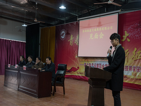 大会首先由济南轨道交通集团有限公司工程师李峰介绍济南轨道交通集团有限公司的组织构架、企业发展特色和公司发展远景。紧接着蒋鑫工程师又对订单生培养情况进行了介绍,让同学们进一步了解了济南订单生的培养要求及验收标准,同时告戒同学们只有通过层层的选拔,才能顺利进入公司。