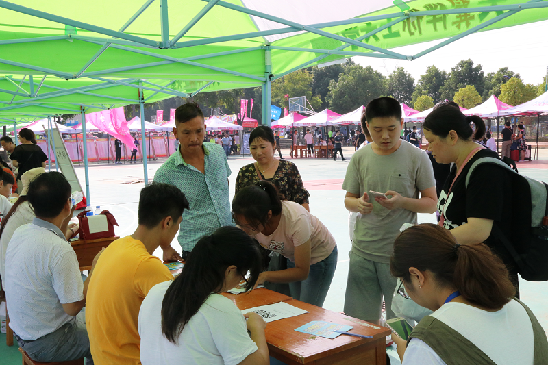工作人员耐心解答家长和新生的疑问