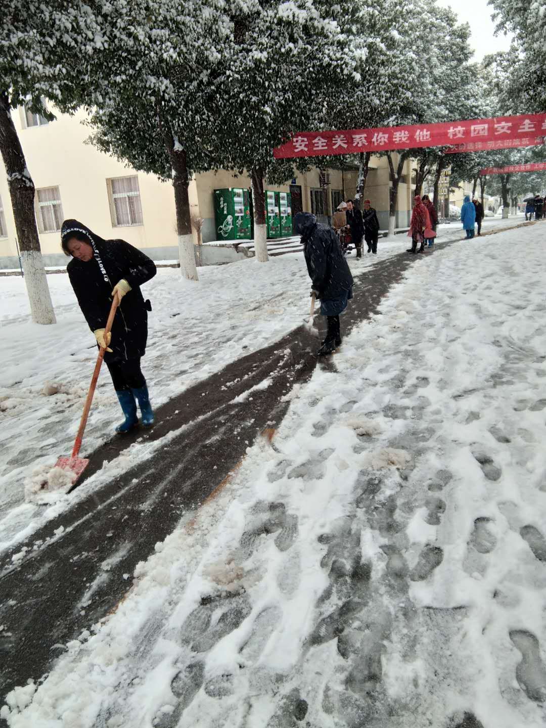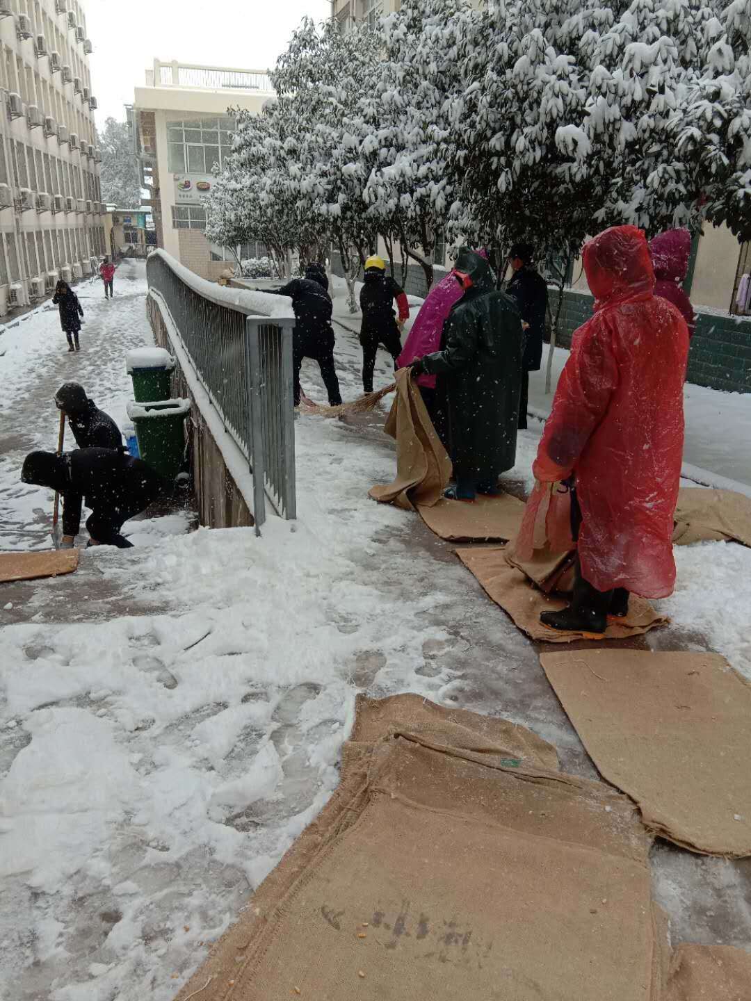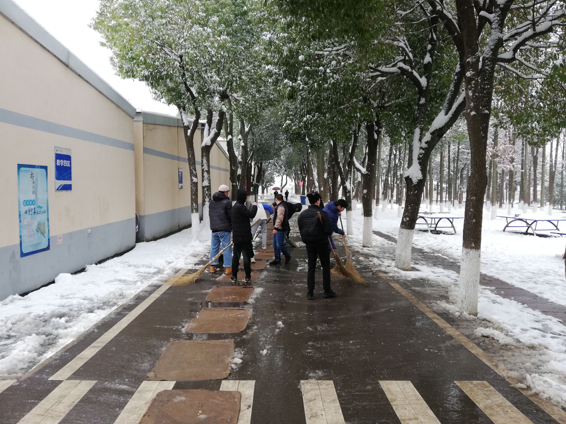 在大家的共同努力下,校园路面积雪被清扫干净,学院水电等基础设施正常有序运转。