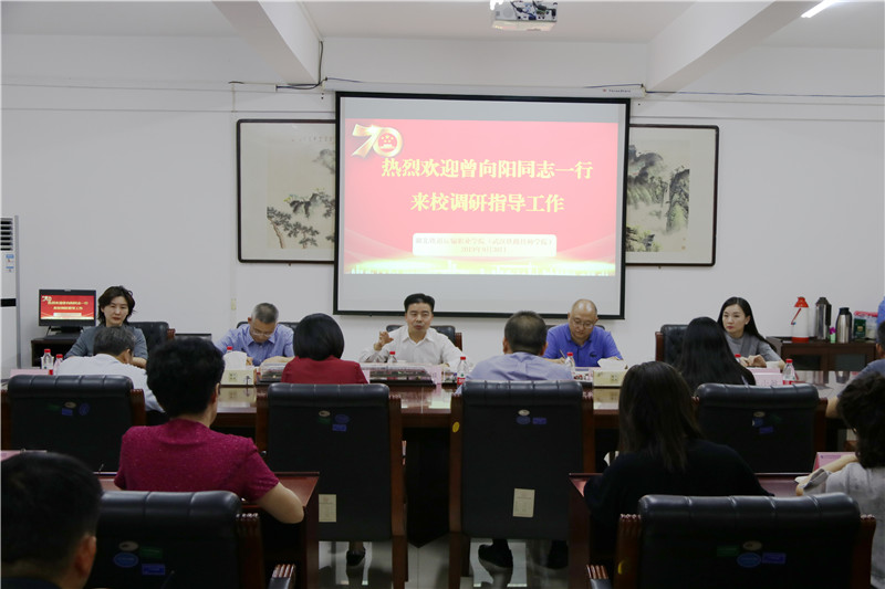 9月30日,省人社厅党组成员、副厅长曾向阳带领厅事业处、职建处、职称处、职业技能鉴定中心等部门负责人到学院调研指导工作。