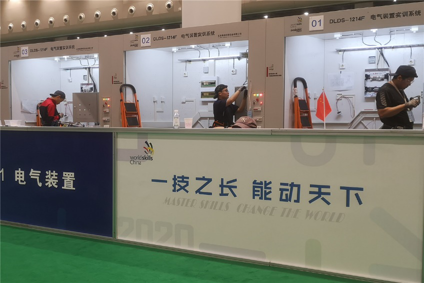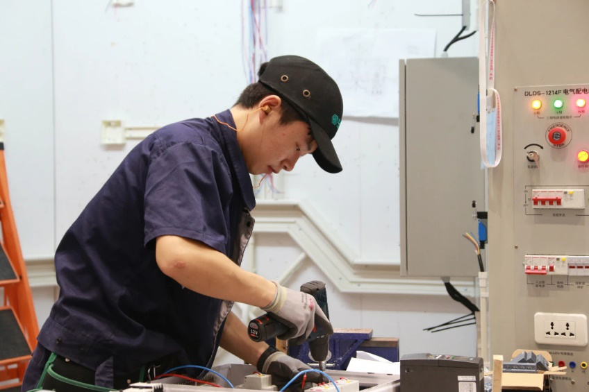 此次比赛在技术命题、评判标准和赛程组织等方面都参照世界技能大赛标准执行,要求选手按照国家相关电气施工标准,根据施工图纸在11小时规定时间内完成管路布局安装、电气线路安装、系统调试、KNX编程,并能完成电气设备的检查与维护。比赛过程中,beat365参赛选手李泉平、吴森、杨治国在各自工作间争分夺秒,熟练运用各类器材和工具,在规定的时间内完成了所有的比赛内容,充分展示了良好的职业素养和精湛的技术技能。